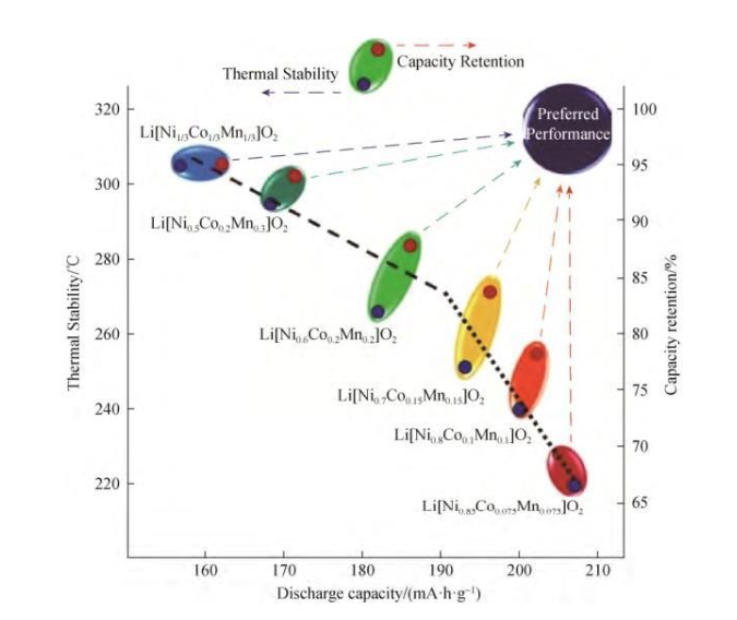 三元材料鎳鈷錳(NCM),具有高比容量、長(zhǎng)循環(huán)壽命、低毒和廉價(jià)的特點(diǎn)。此外,三種元素之間具有良好的協(xié)同效應(yīng),因此受到了廣泛的應(yīng)用。