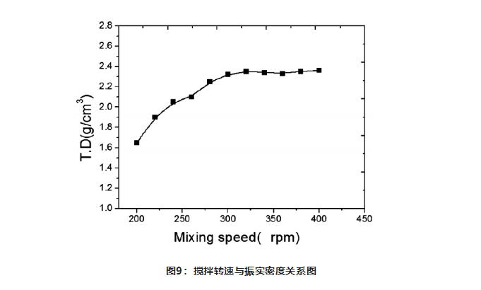 攪拌速度對(duì)晶體結(jié)晶過(guò)程影響較大,從而影響前驅(qū)體的振實(shí)密度。