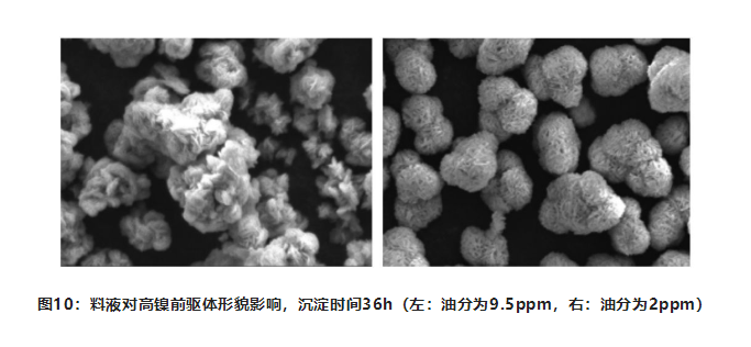 研究結(jié)果表明,若得到高振實(shí)高鎳前驅(qū)體,料液油分控制必須≤5ppm。